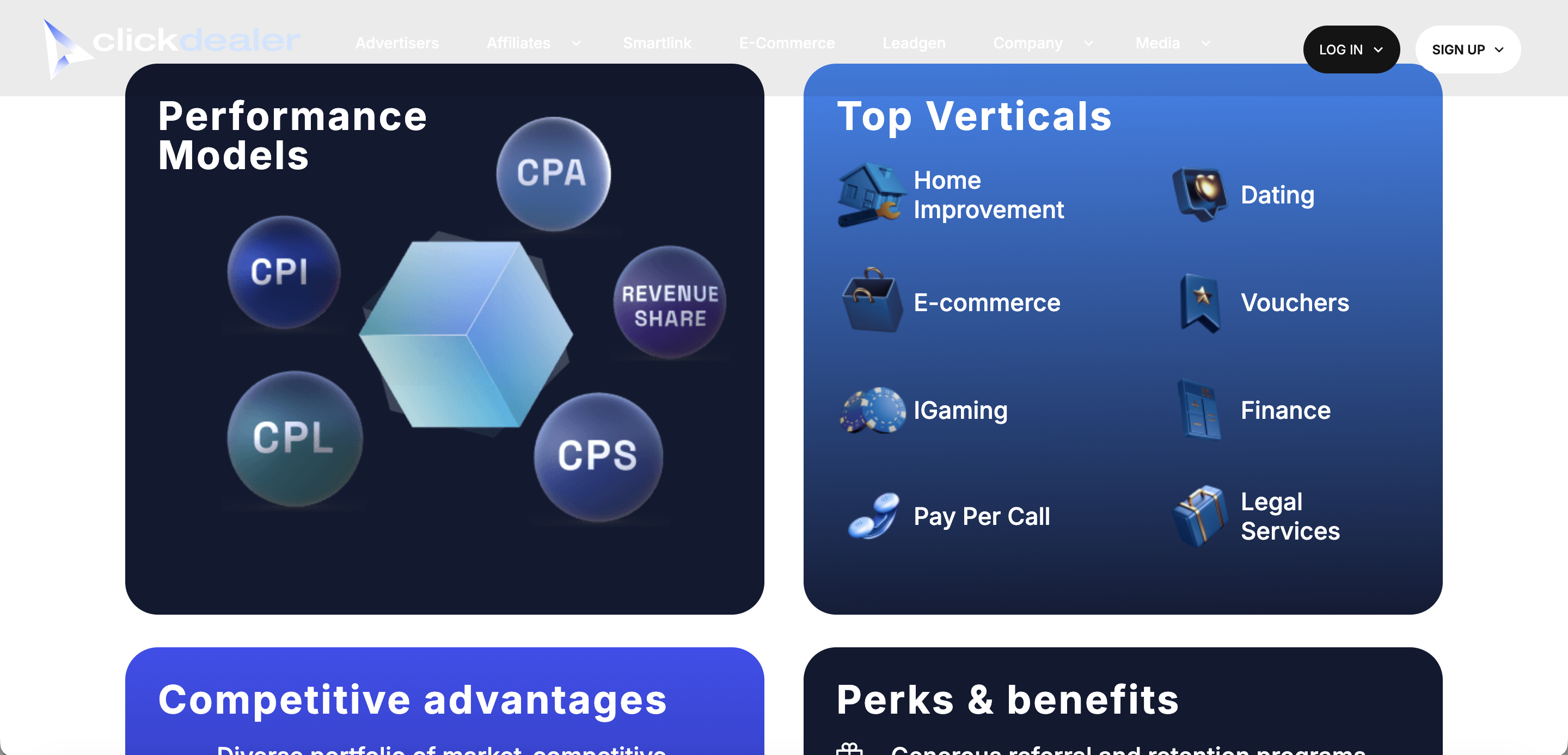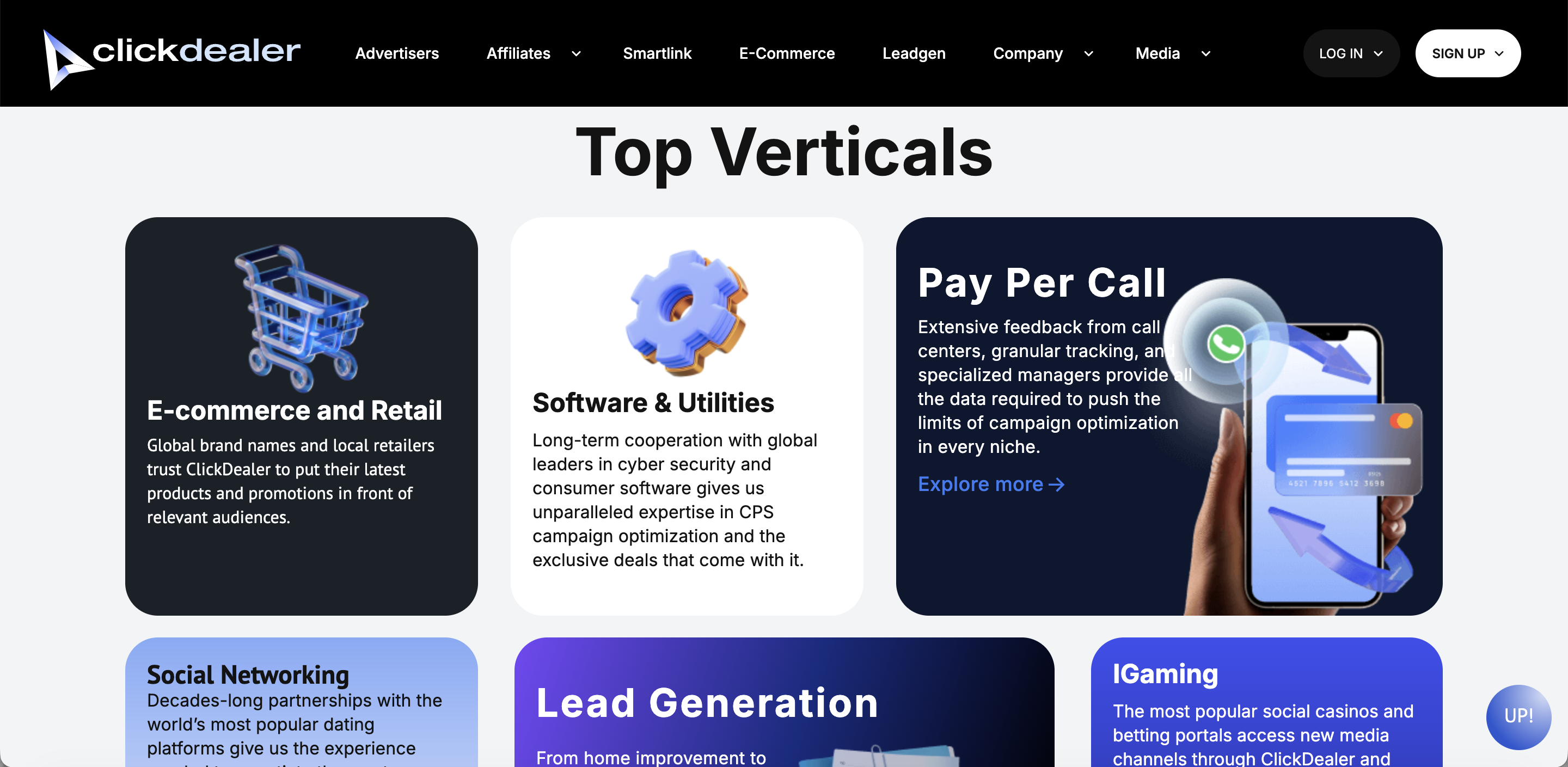 - Diverse Offerings Across Multiple Verticals: ClickDealer offers versatile solutions in several key verticals including e-commerce, finance, health and wellness, mobile apps, and more.